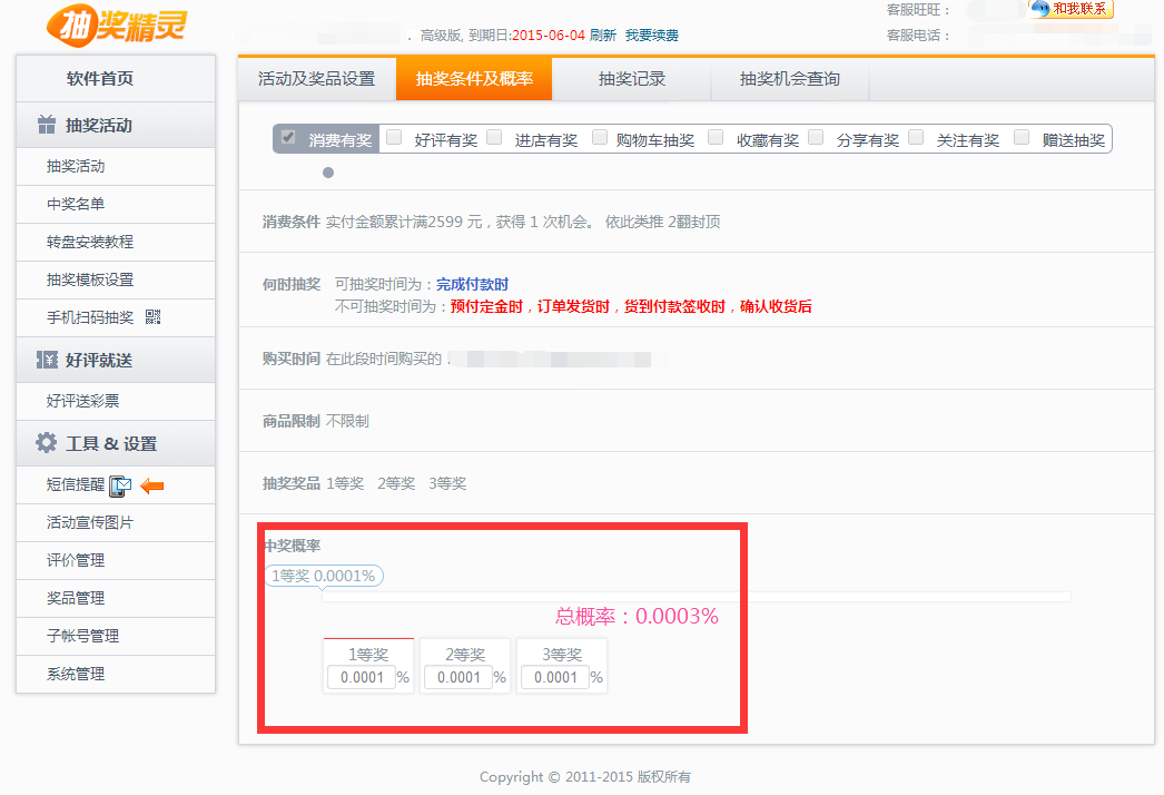 我可以操纵中奖率,一等奖中奖率多少,二等奖多少之类的。