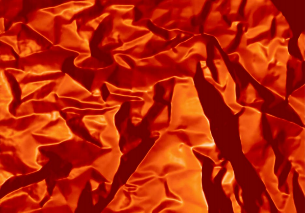 折痕的产生并不是规律的,它们的形状通常不是一条线,而且相互交叉,形成类似山脊( ridge)的几何平面形状。这种复杂情况就不好使用模型来模拟了,我们实际的来揉一团纸/塑料膜[4]: