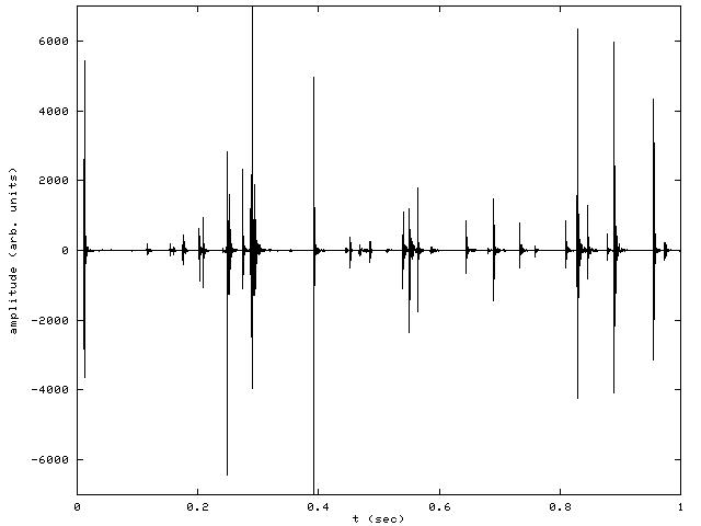 上图是一秒钟之内揉一团塑料袋时候的噪声情况,可以看到该噪声有如下几个特性: