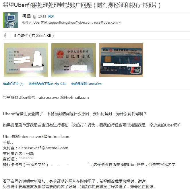 嗯,我当时耐着性子等是不是我发得信息还不够全,又发了第三次邮件。信息更全,态度更诚恳,然后就是石沉大海的无视。(这次我发了support@uber.com-总客服邮箱以及supporthangzhou@uber.com-杭州客服邮箱)