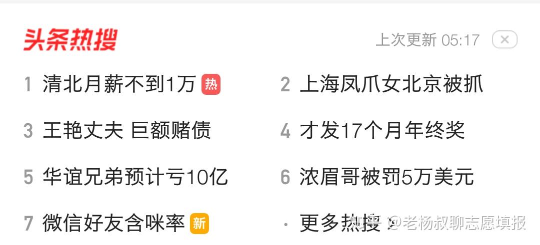 因为极易形成社会性话题,不仅大学生爱看,职场人士爱看,考不上大学的吃瓜群众更爱看,看大学生,尤其是高考状元、清北学霸倒霉是一件很爽的事情,跟看《斗破苍穹》差不多,因为大家上学的时候经常被家长、老师和这群人对比,早就恨透他们了。想想你有没有被学霸支配的恐惧?家长和老师怎么整天拿学霸说你们,你不知道非常多的人恨他们吗,恨的人多爱看的人才多,这就是需求啊同学们。看看,话题沾清北就火,倒霉更火。