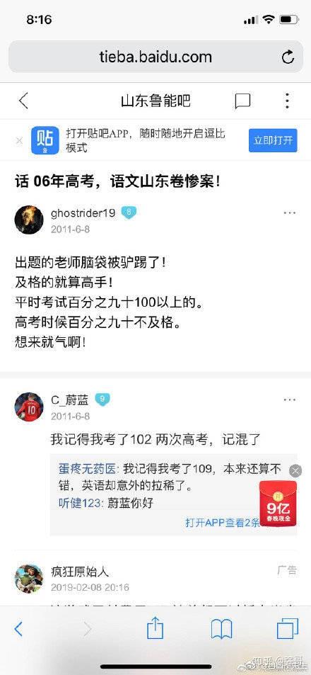 他曾经说自己高考过一本线,据相关历史信息,2006年山东文科一本线568分,如果数学19分 ,文综270多分,那么语文和英语都要到140分才可以,然而2006年语文和英语高考题都比较难,连文科状元语文才110多分。