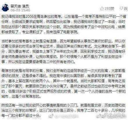再来个大瓜,翟天临高考348分,证据比较充分。再有他考研是推免的,考博是补录的,再加上博士和硕士论文都涉嫌抄袭,基本都实锤了。看来北电真要丢卒保车,定要将其捶入深渊的节奏。