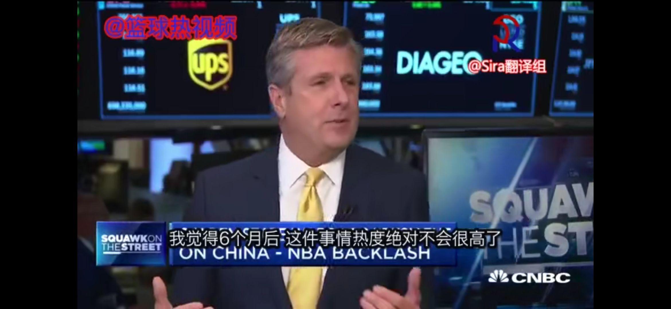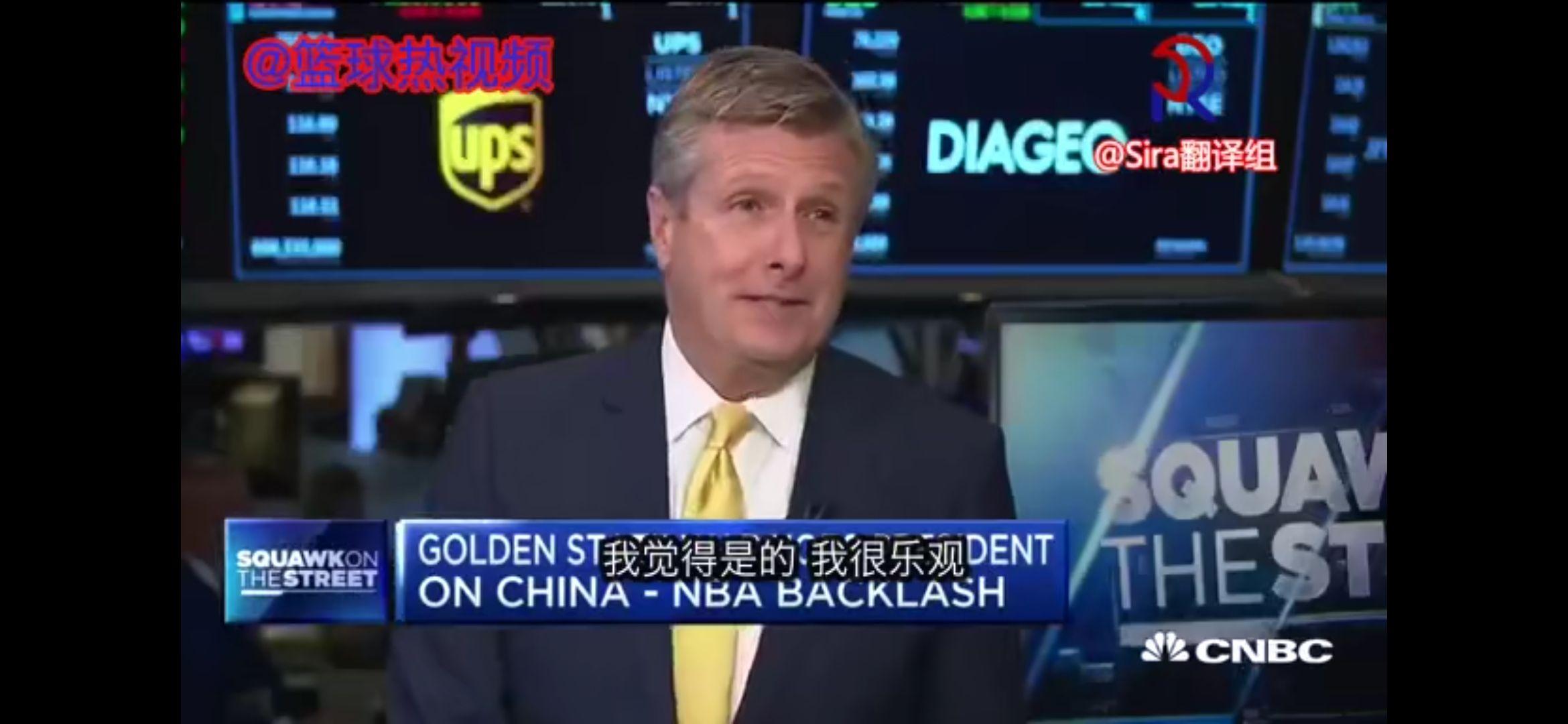金州勇士的总裁Rick Welts今天接受CNBC采访时说:“NBA鼓励队员和管理人员表达个人意见,而这也仅是个人意见。不会限制自己球队成员发表个人意见。最近事件带来负面经济后果,但我肯定的是,事件不会抹去NBA在中国数十年的耕耘。中国对NBA的反弹终将过去。我相信我们在中国的未来将会是非凡的。”