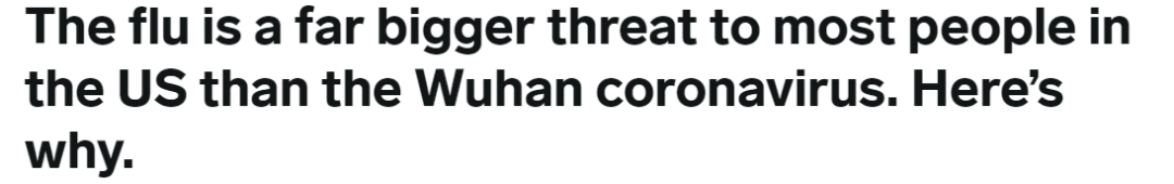 1月28号,美国商业新闻表示:“对美国来说,流感是比新冠更大的威胁。”