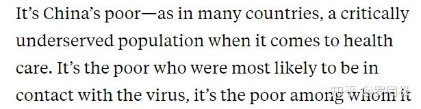 “中国的穷人更容易感染新冠,并且无力负担医疗。”