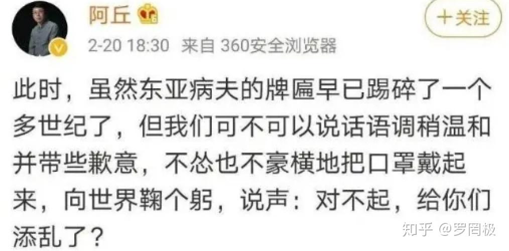 前央视主持人阿丘,却在病源不明的情况下,要中国人向全世界鞠躬道歉。