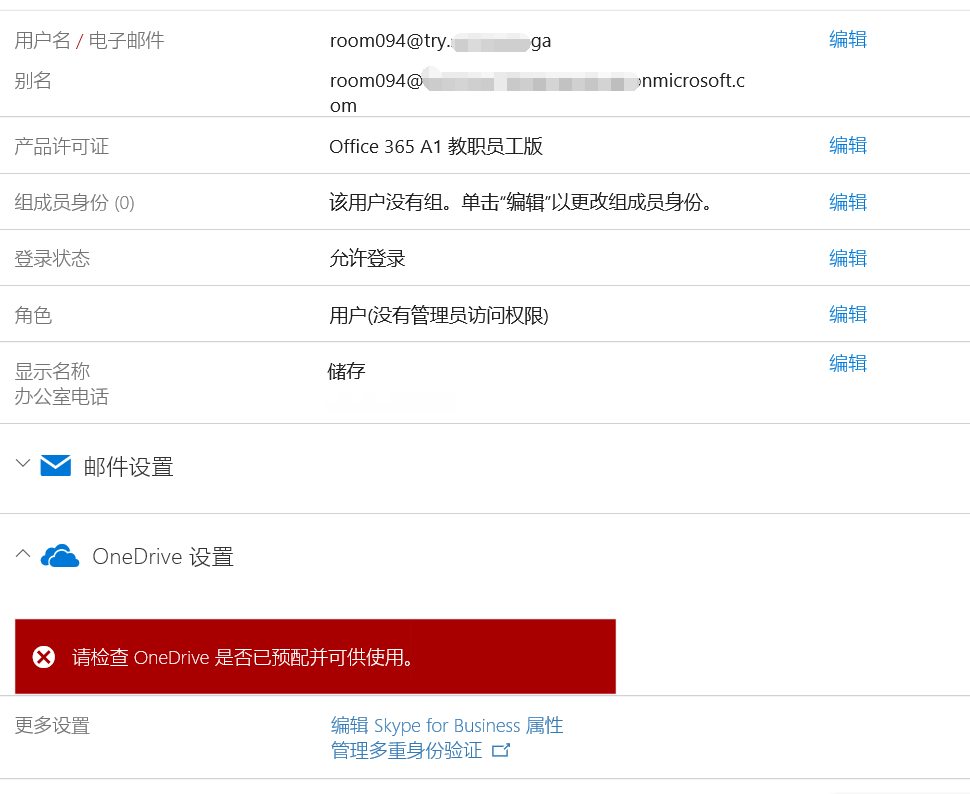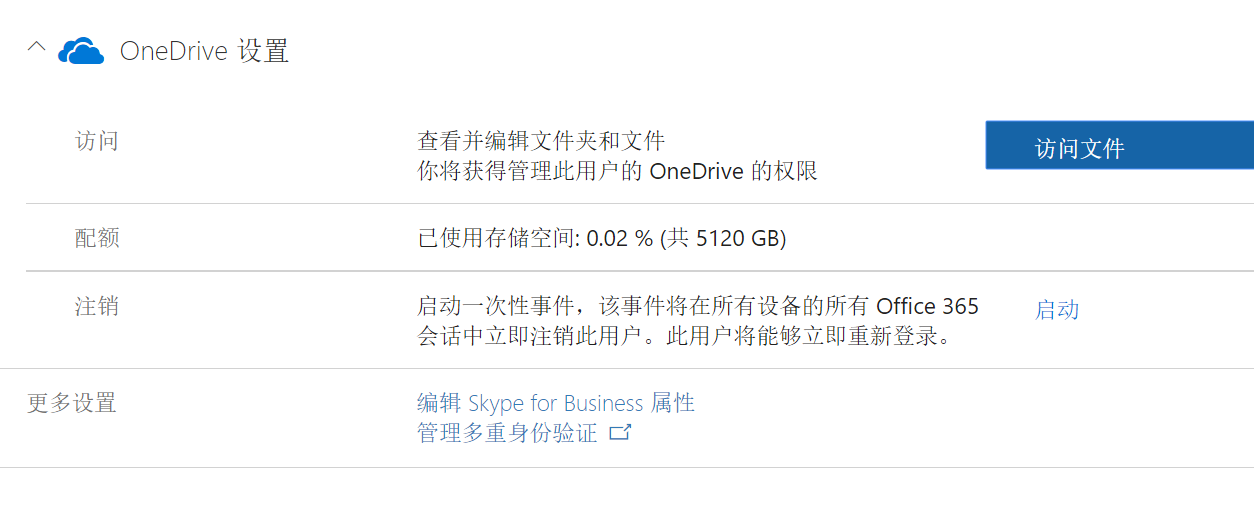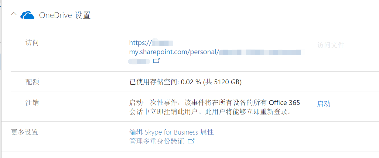 第一次登陆,没有启用过onedrive。就是这个样子。现在我用了,再回去看看管理员那边的情况。