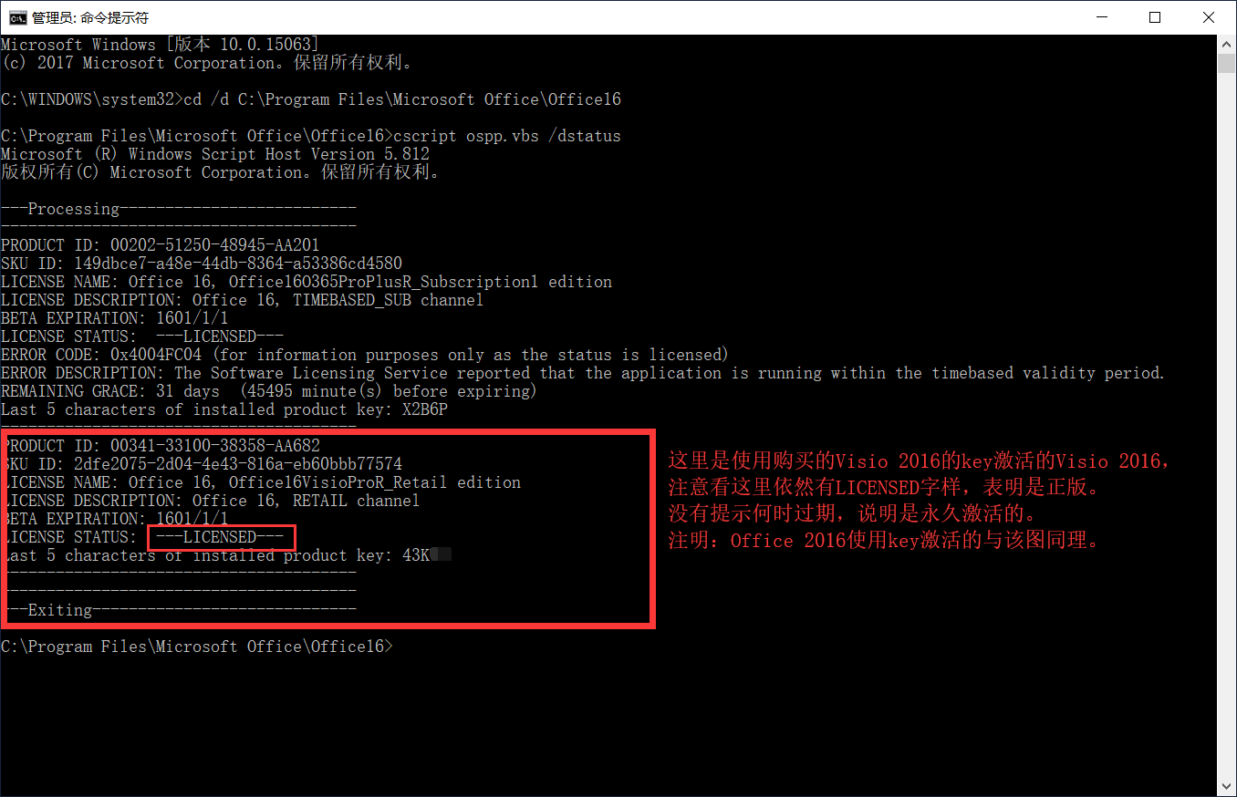 使用命令行查看自己安装的MS Office产品许可证的方法(Windows操作系统):