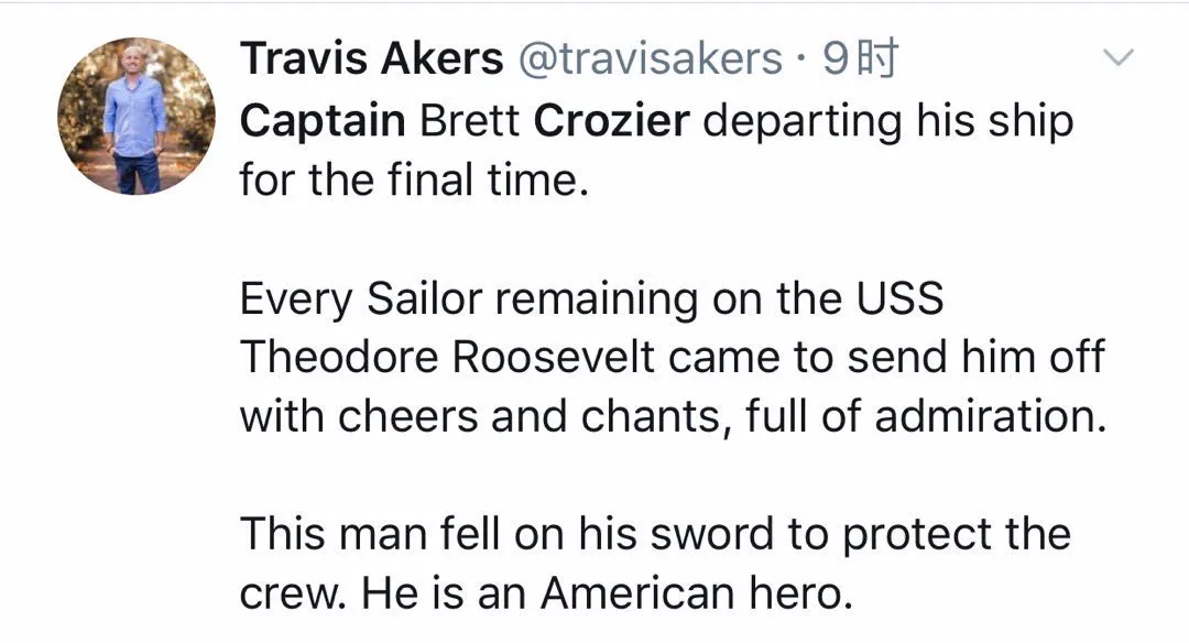舰长下船的时候的视频https://www.zhihu.com/video/1229720567726321664显然是个英雄人物,没什么好说的了。疫情面前,人命关天。作为带领队伍的领导,首先要保证自己手下的安全。能被船员这样欢送的舰长,绝对是好舰长。人心自有一面明镜