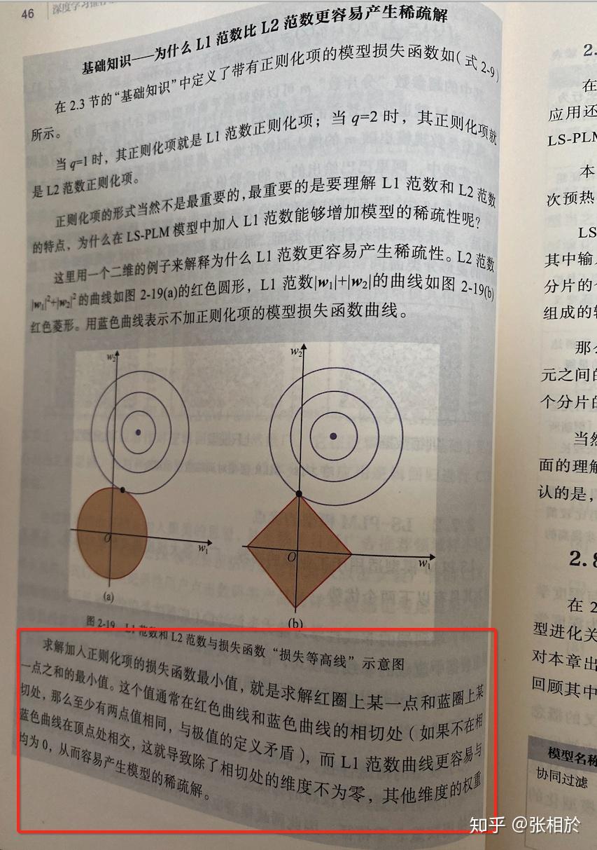 P46关于L1正则化为什么更容易找到稀疏解的理解应该是有误,主要是下图红框中的内容。