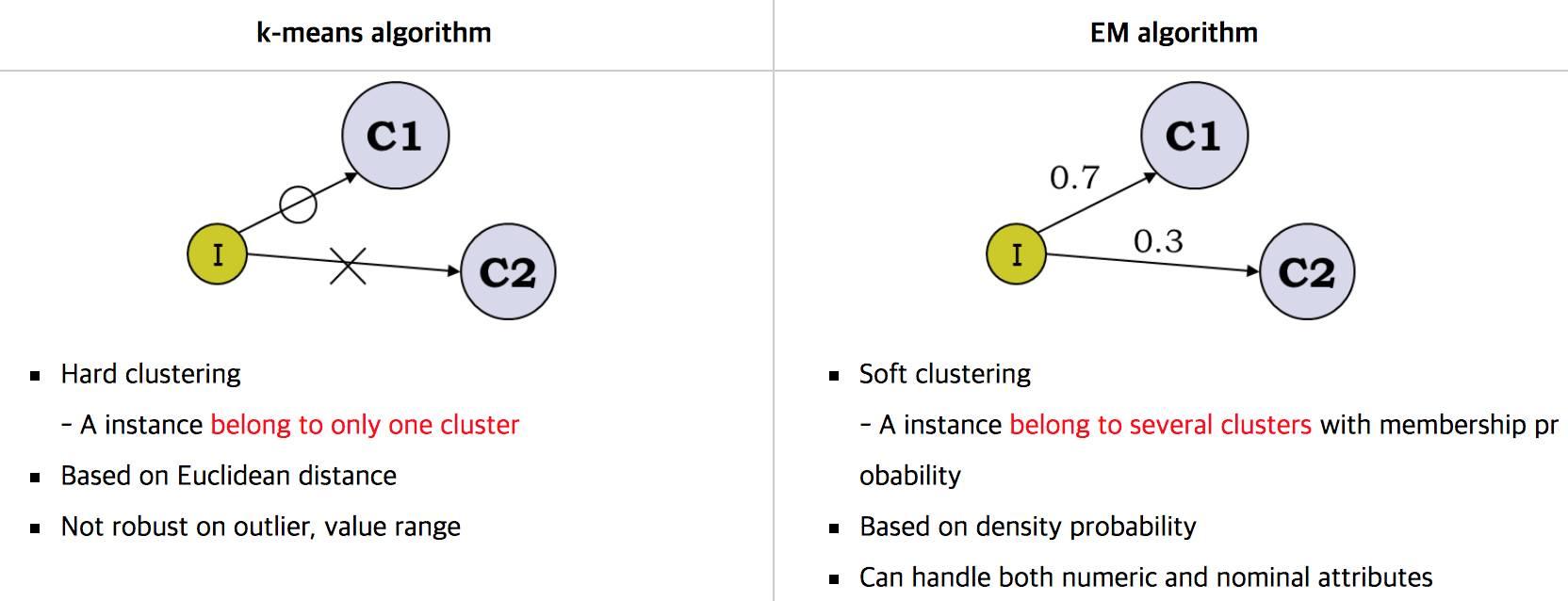 如果你觉得这个扩展不太好理解, 那么更为简单直观的就是, k-均值用的hard EM算法, 而我们说的EM算法是soft EM算法。 所谓hard 就是要么是,要么不是0-1抉择。 而Soft是0.7比例是c1,0.3比例是c2的情况。