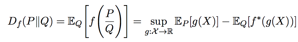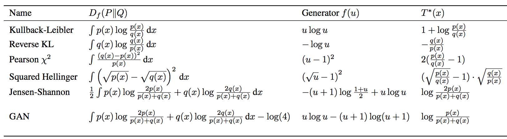 然后微软的 Sebastian Nowozin, 把 f-散度扩展到GAN “f-GAN: Training Generative Neural Samplers using Variational Divergence Minimization”。
