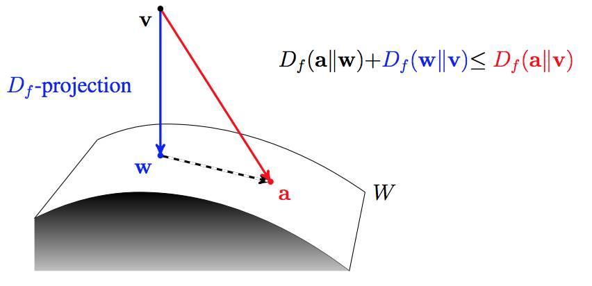 然后再基于Bregman距离去研究最小KL投影, 函数空间采用香农熵(参考“信息熵的由来”)。