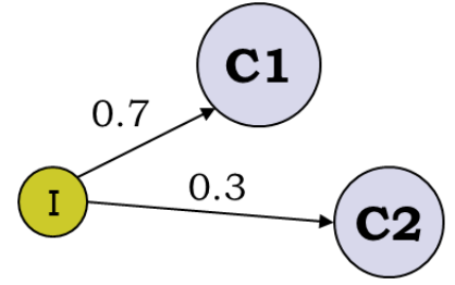 最经典的例子就是抛3个硬币,跑I硬币决定C1和C2,然后抛C1或者C2决定正反面, 然后估算3个硬币的正反面概率值。