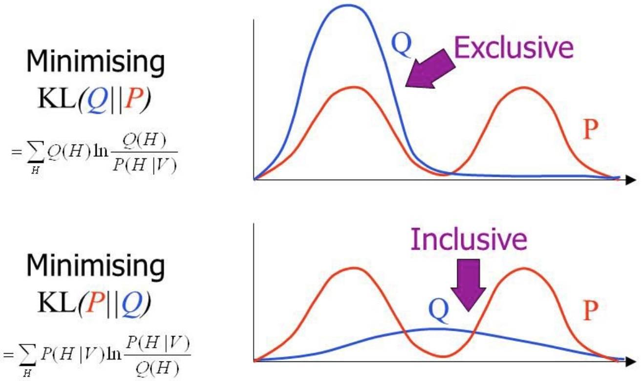在前面自由能里面,我们将KL距离引入了, 这里刚好这两个阶段分别优化了KL距离的两种形态。 固定P优化Q,和固定Q优化P。