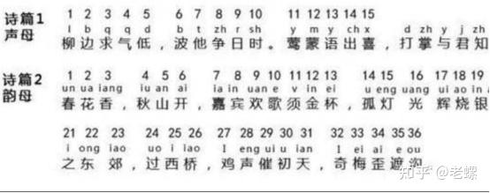 第一步,按照戚继光的方法,将这两首诗标上数字和声部韵部。