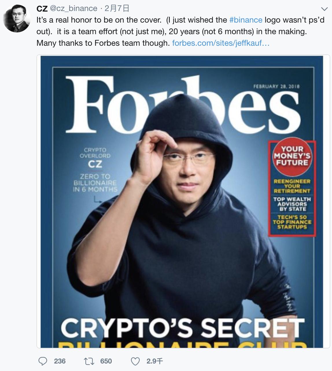 币安CEO也跻身福布斯排行榜,6个月赚了125亿(开交易所比卖白fen赚)
