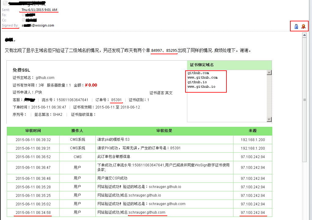 4-由于2-3甚至更多的问题导致github证书误签发,沃通的处理方式很原始粗放,不太像是个中国最大的证书签发机构还有的样子