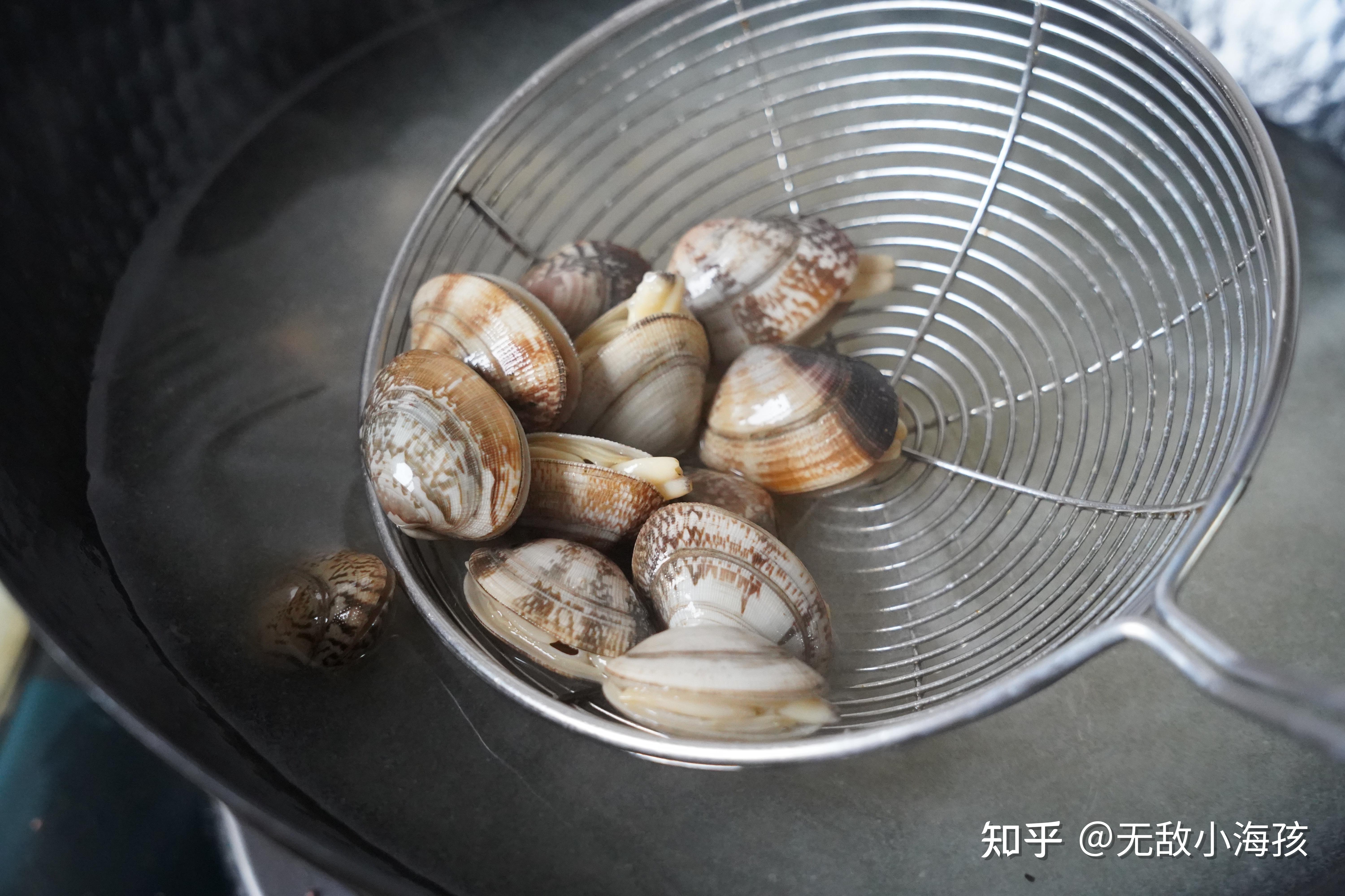 然后放入花蛤,只要花蛤一开口,就捞出。