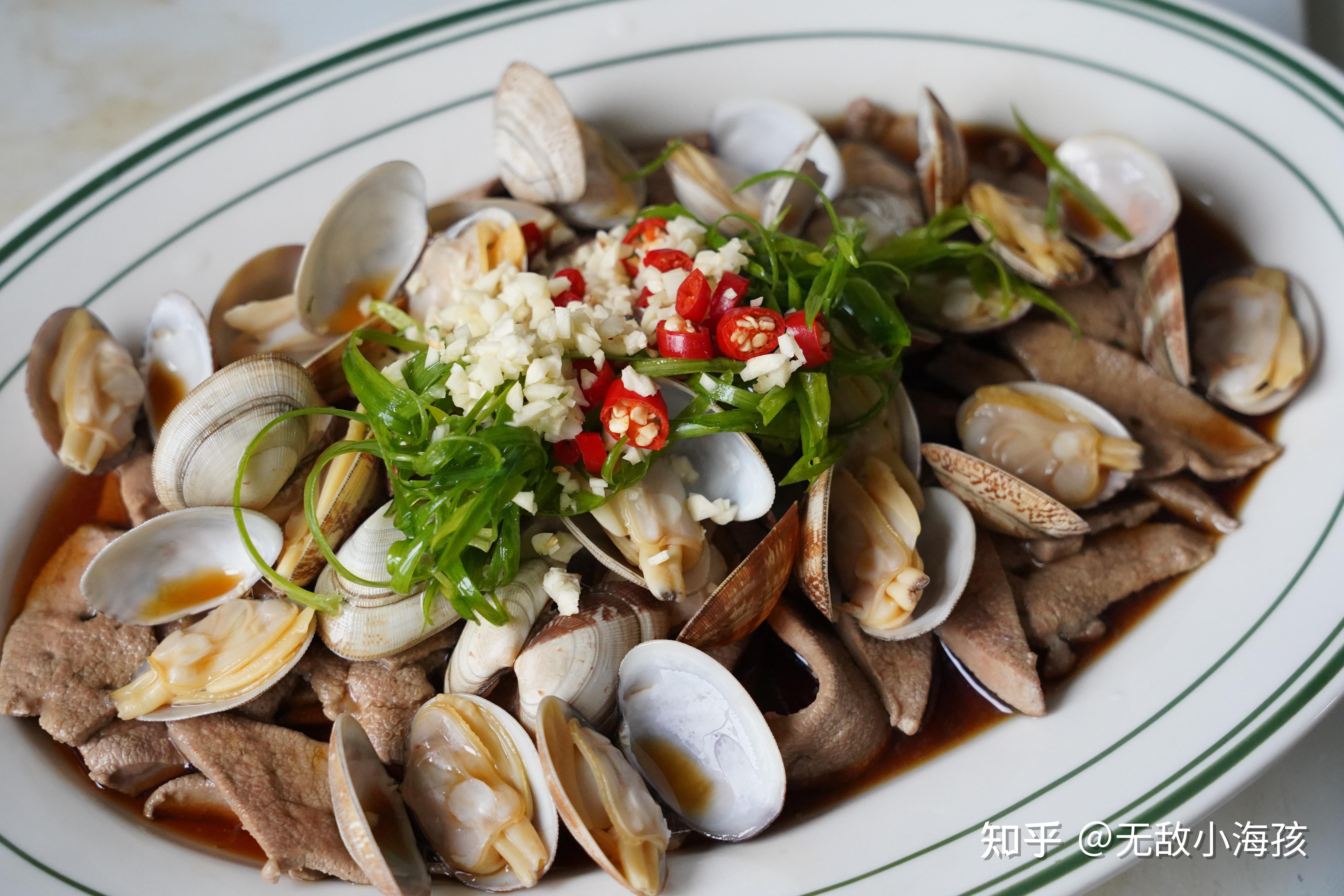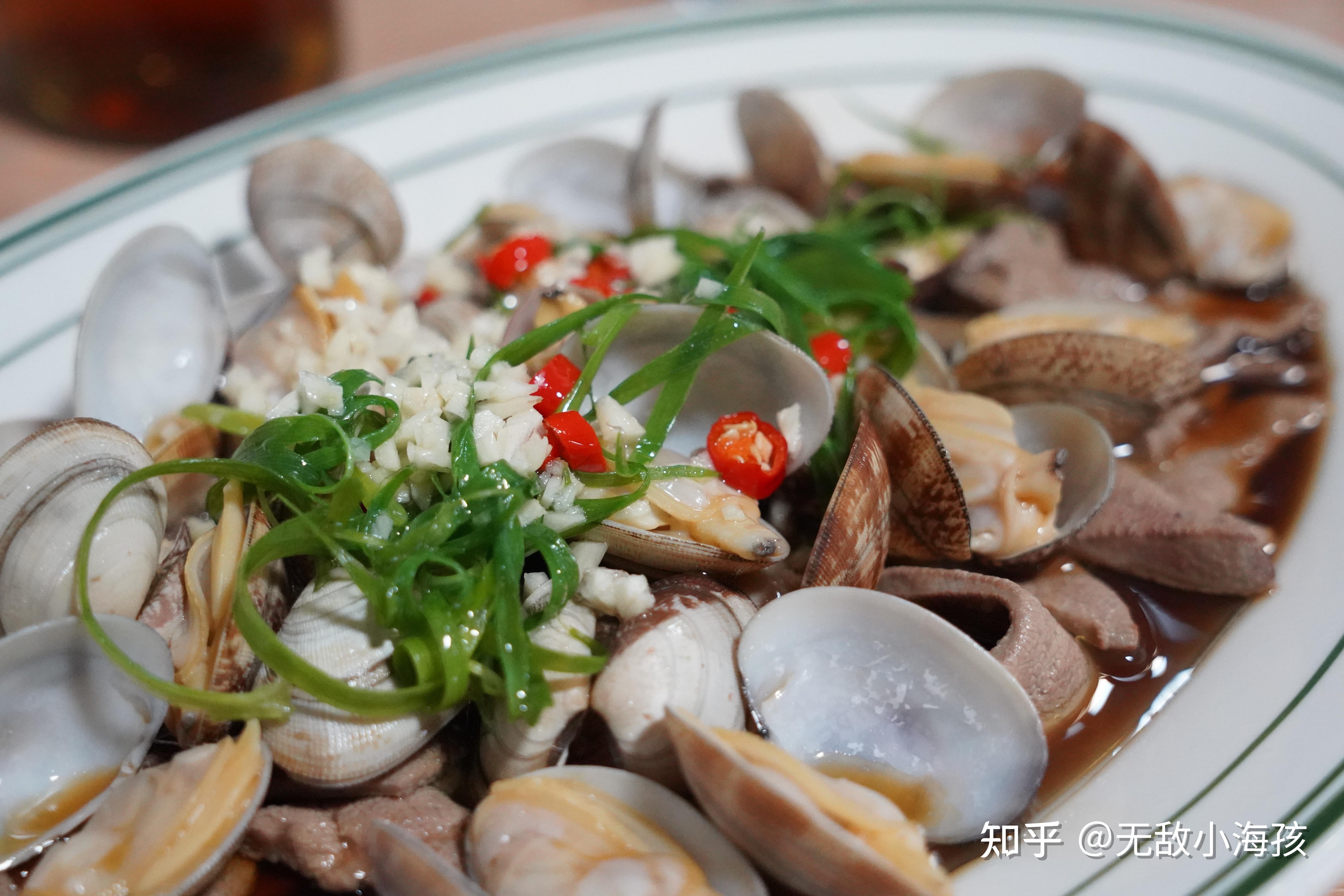 原来,在上海,猪肝和花蛤基本上都是用来辣炒的,增加浓重的辣椒风味,可以说对于猪肝和花蛤本身的风味都没办法很好的体现(胶东半岛吃花蛤基本上就啥也不放),不知道哪个神人,把花蛤猪肝用清水汆煮+酱油水油淋的方式来做,简直升华了两个食材。