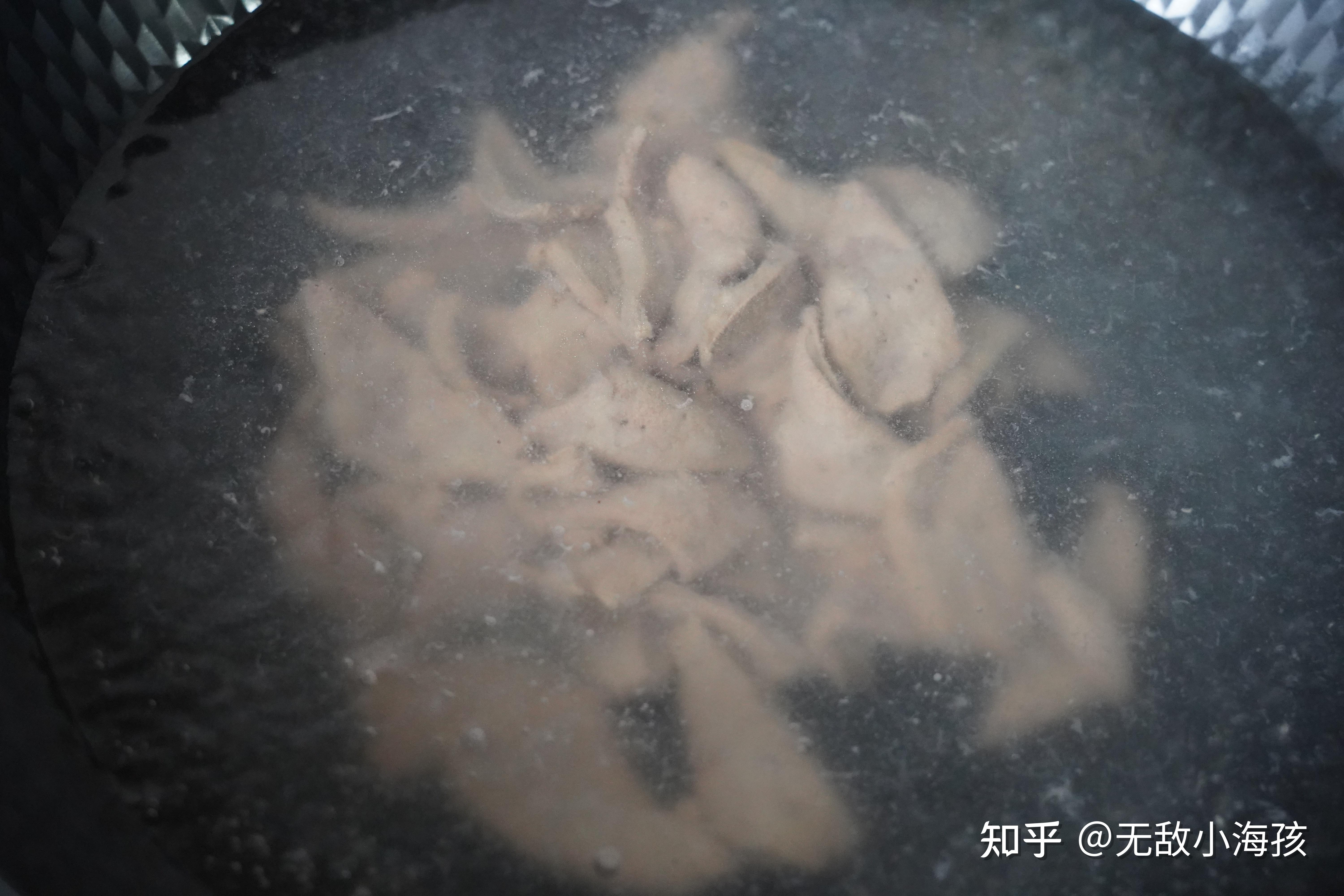 一锅水烧开, 首先放入猪肝,汆烫15秒,如果接受更生的,可以烫10秒,捞出。