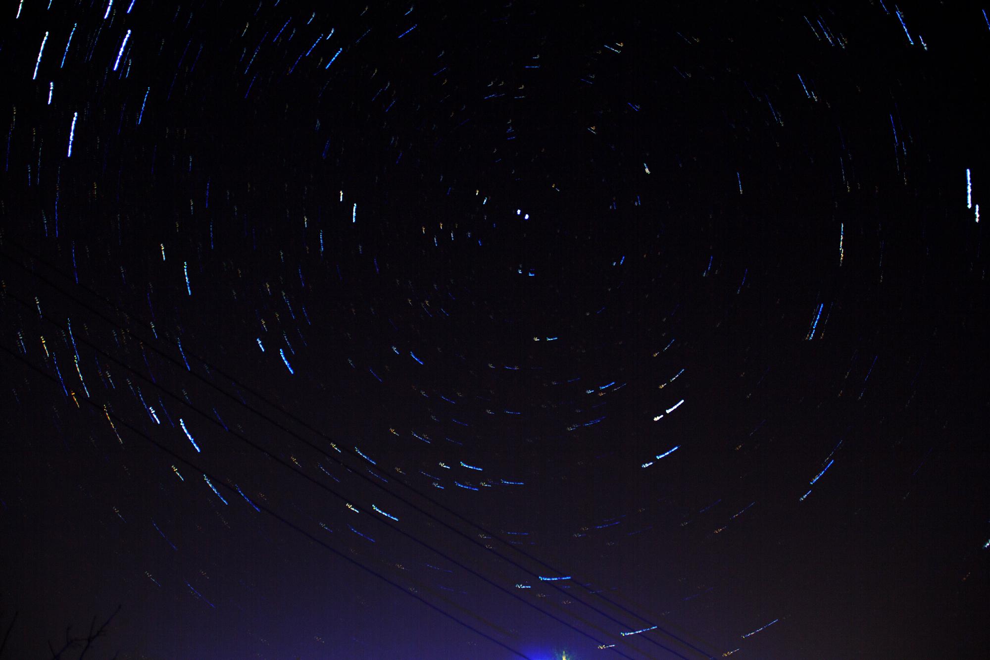第一次拍星野是15年初在老家(河北)的山上,在山上用手机百度拍星轨的方法,也没有快门线,一张一张用手按的快门,大概按了30、40张左右,JPEG格式。