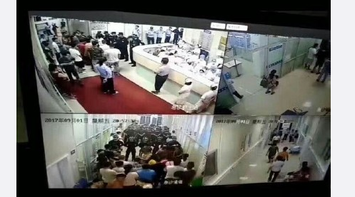 四、医院有多名身穿特警警服的人在把守。