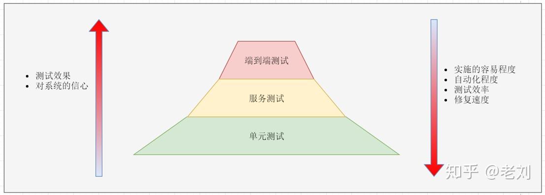三种测试从上到下实施的容易程度递增,但是测试效果递减。端到端测试最费时费力,但是通过测试后我们对系统最有信心。单元测试最容易实施,效率也最高,但是测试后不能保证整个系统没有问题。