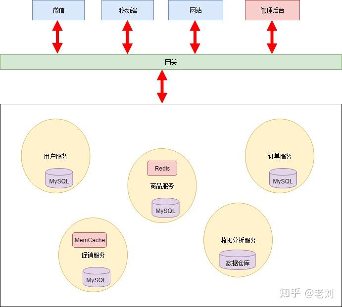 完全拆分后各个服务可以采用异构的技术。比如数据分析服务可以使用数据仓库作为持久化层,以便于高效地做一些统计计算;商品服务和促销服务访问频率比较大,因此加入了缓存机制等。