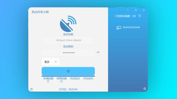 热点共享大师是一款运行在Win10/11平台上的共享WiFi热点软件。它可以通过一键开启WiFi共享,让您快速搭建无线网络环境。使用热点共享大师,您可以将笔记本或台式机的无线网卡或蓝牙(即将支持)利用起来,将网线或已连接的WiFi网络共享出免费的WiFi或蓝牙网络热点。此外,热点共享大师还支持部分校园网,为您提供更多上网选择。
